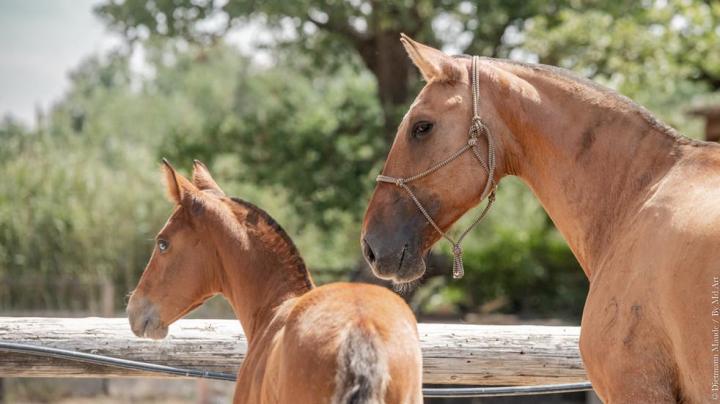 Having previously given birth at her original breeding farm, she welcomed her first foal in our program in 2023, Ti Amo do Rima.