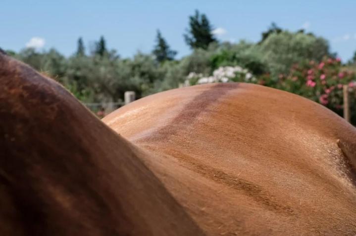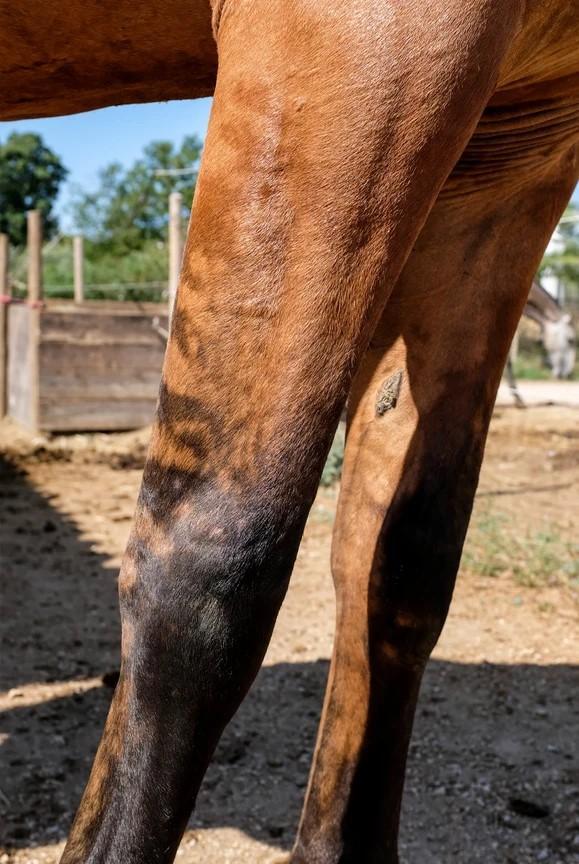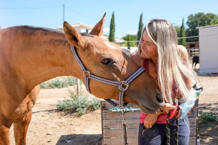 Initially wild and deeply afraid of humans, we gradually introduced her to human interaction. This is why she always wears a collar. While she's gentle and kind, her natural instincts kick in when she's with the herd in the pasture.