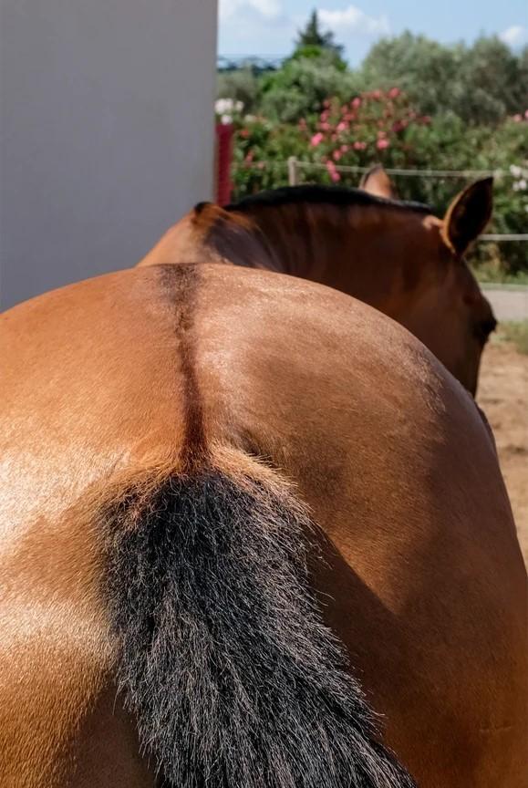 Is the shy one, sporting a stunning Dun coat with stripes.